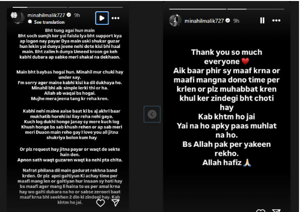 Through the Instagram stories, Minahal Malik reminded her fans that they should love the people who matter in life and forgive those who made mistakes. She reminded people that life is short and unpredictable and that they must try to be kind rather than hateful. Her heartfelt call for love resonated well with many, and so fans empathized with her plight.